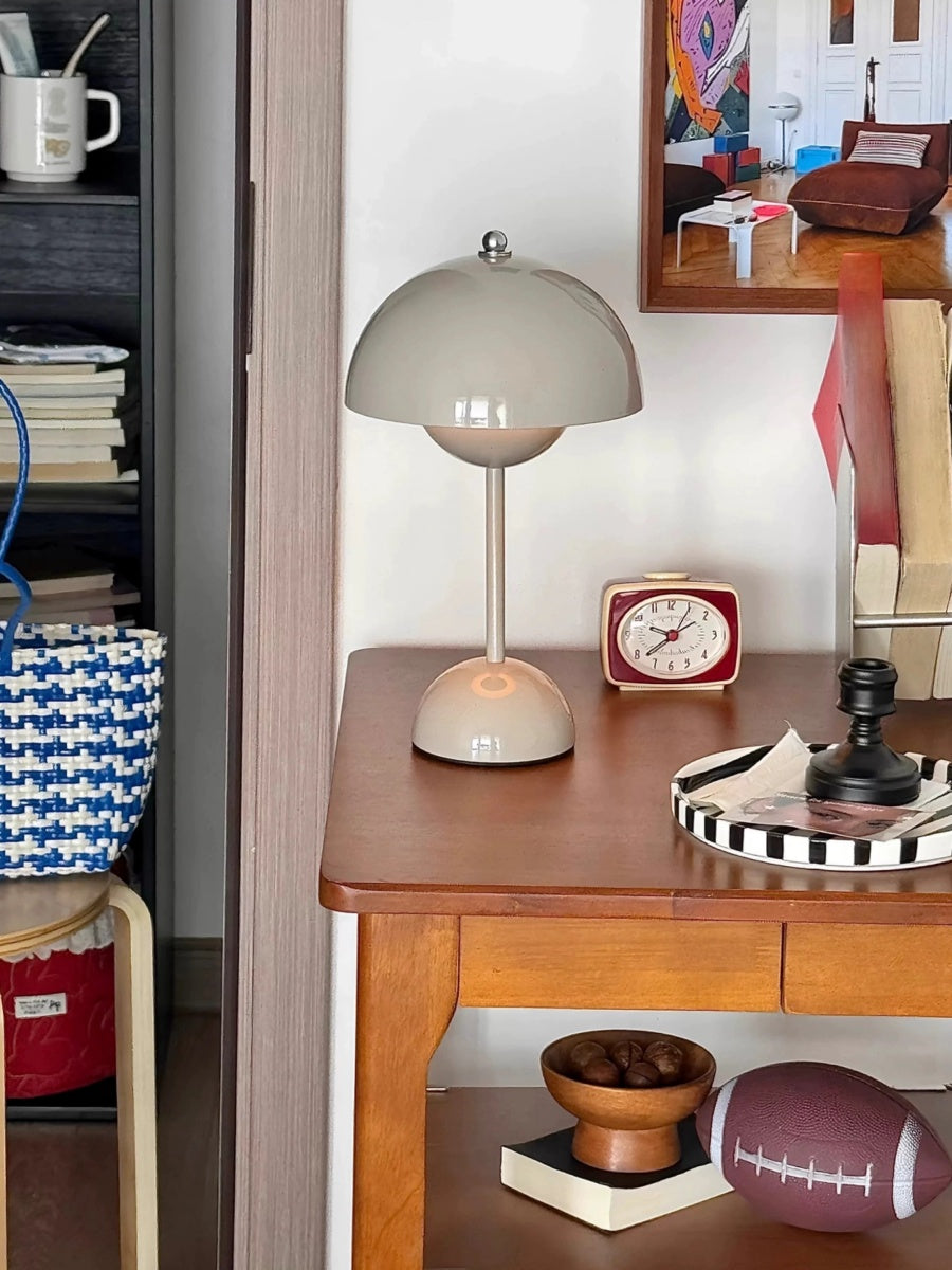 Add a warm and playful glow to your space with this cordless mushroom lamp, designed for flexibility, style, and atmosphere.