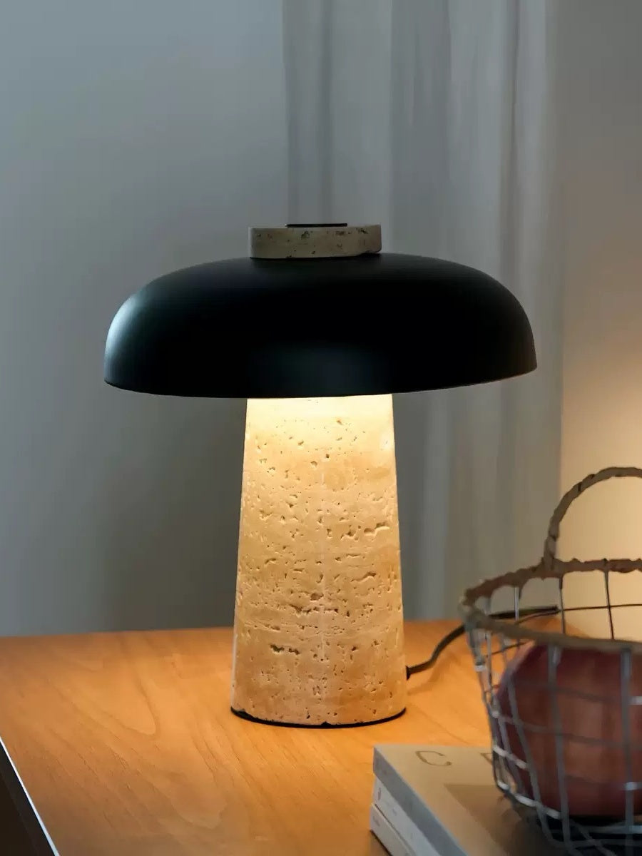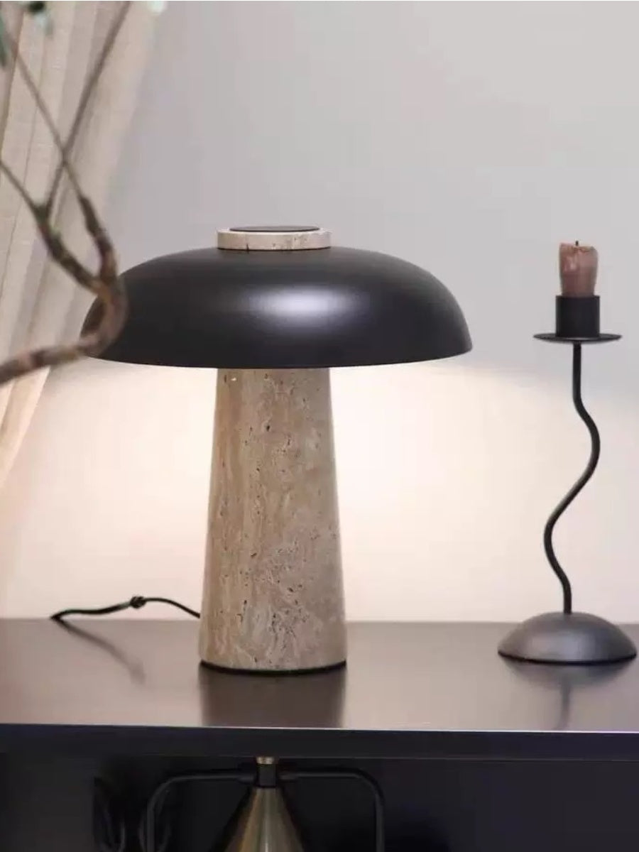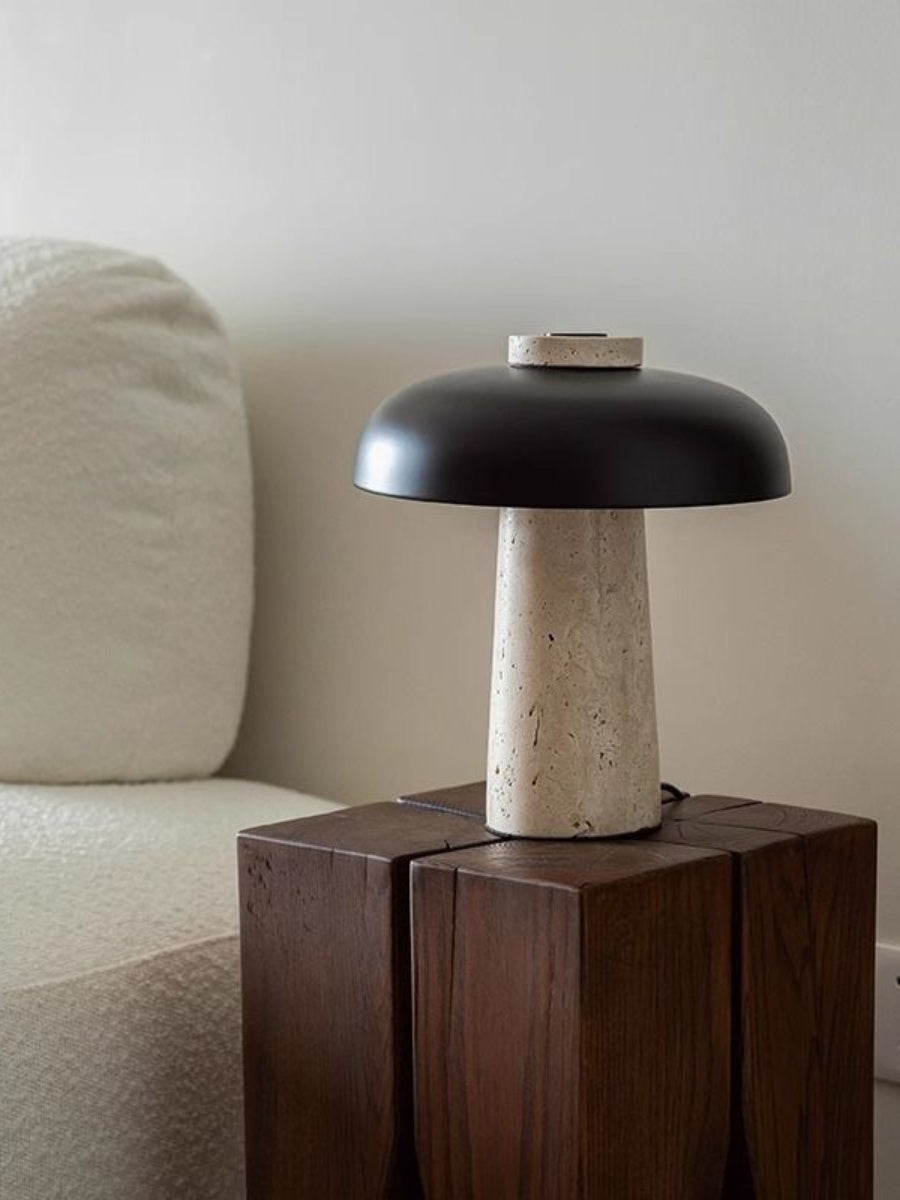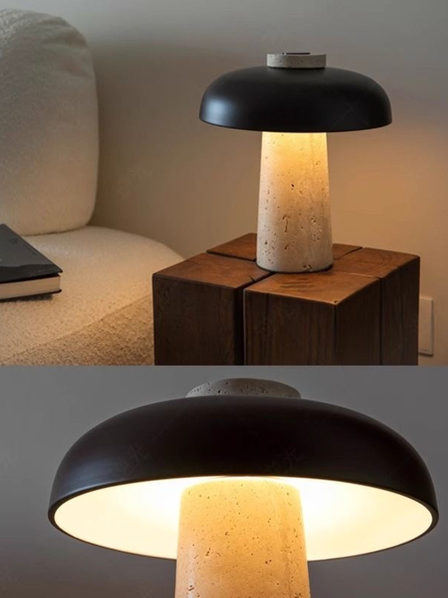 Sculptural mushroom silhouette The low profile dome and organic stone base create a timeless form that blends seamlessly into minimalist, Japandi, or curated gallery style interiors drawing inspiration from the resurgence of vintage mushroom lamps across modern design circles.