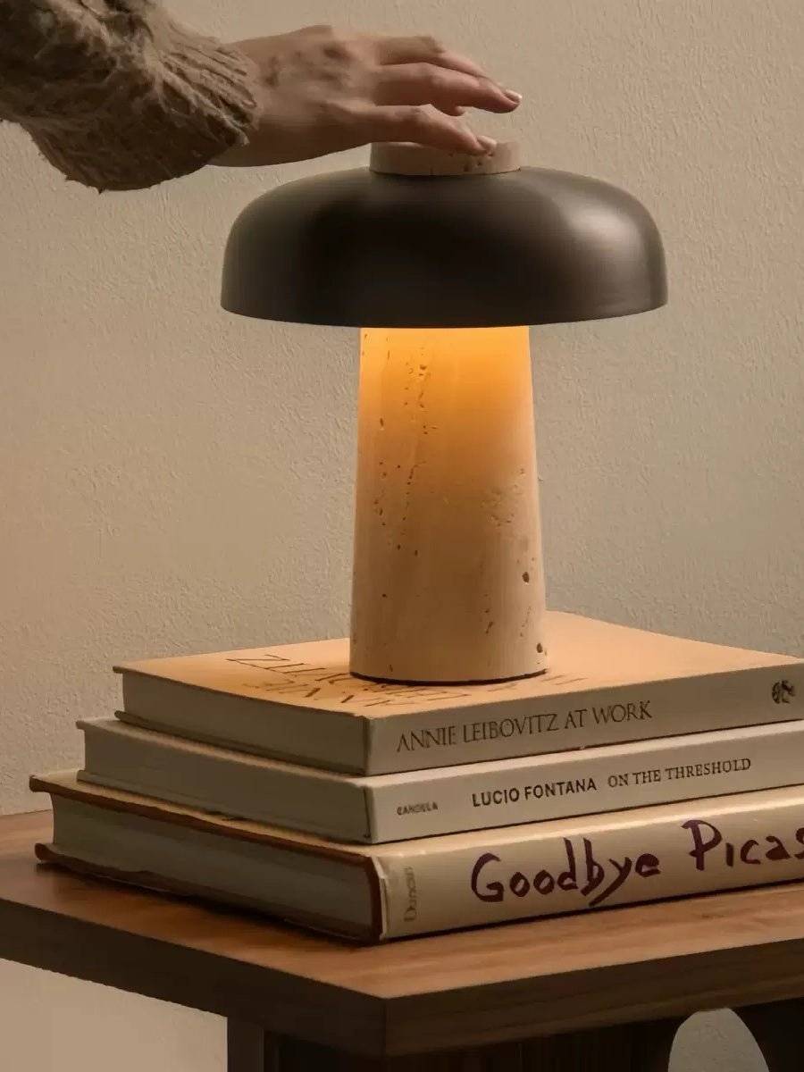 Experience the rising trend of portable mushroom lamps in Australia combining rechargeable cordless freedom with sculptural minimalism and natural stone craftsmanship, this lamp delivers quiet luxury lighting for modern homes or alfresco spaces.