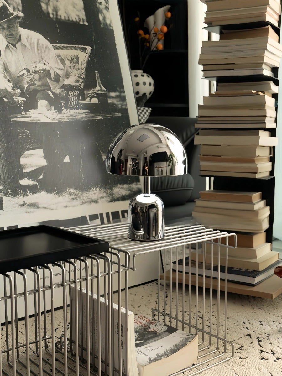 Minimalist Design: With its mushroom-shaped lamp head and metallic finishes, this lamp fits effortlessly into any modern, Nordic-inspired space.