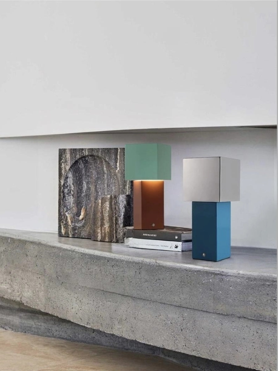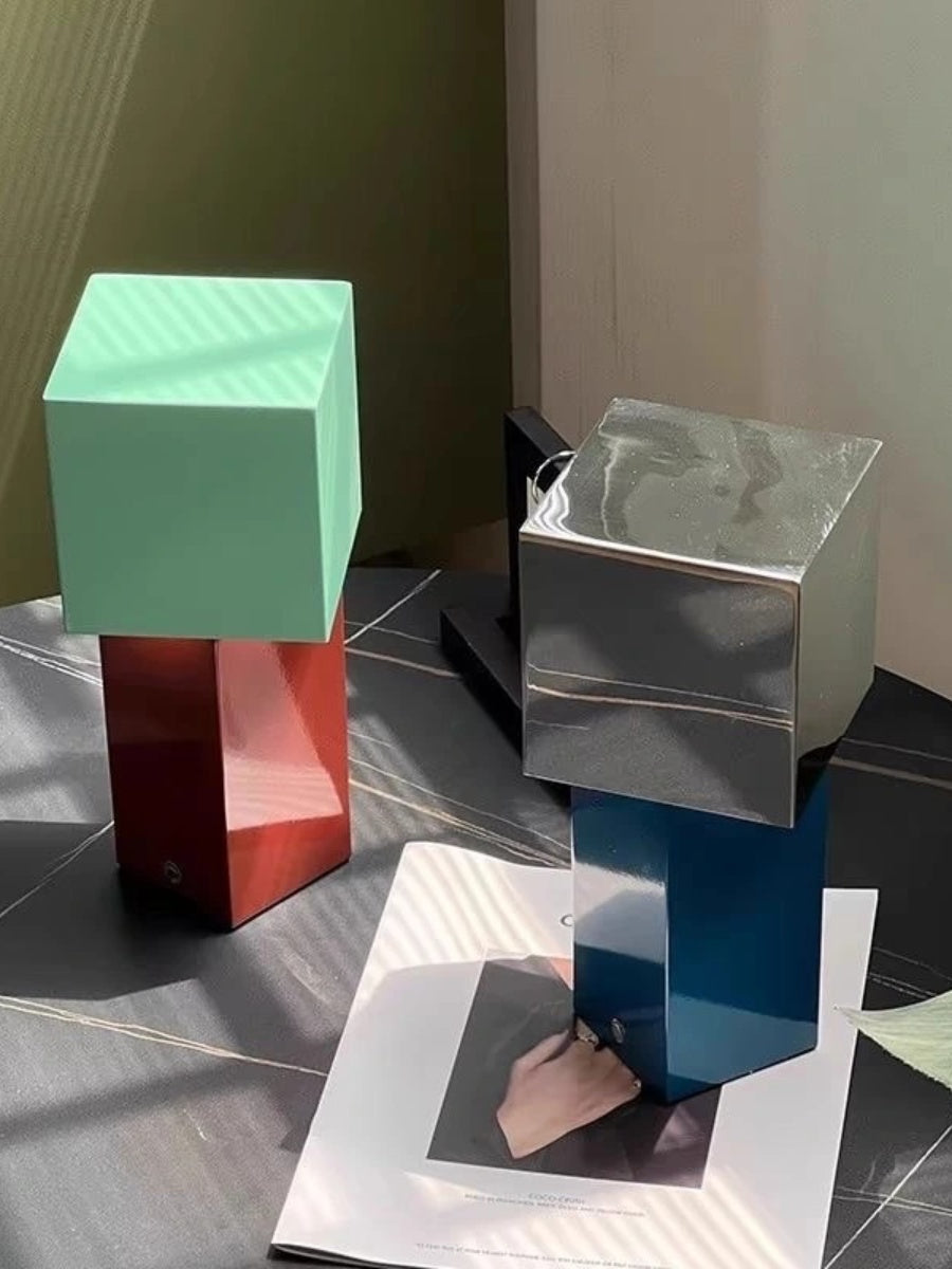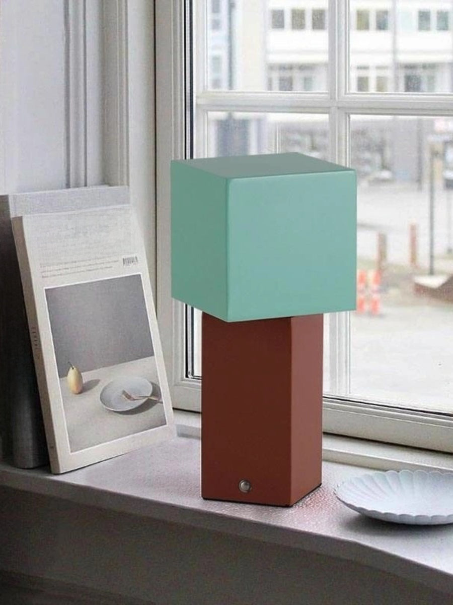This rechargeable cube lamp transforms everyday spaces into modern sanctuaries. With its architectural silhouette and compact form, it brings a strong yet quiet presence to your interior, whether styled on a bedside table, reading nook, or café counter.
