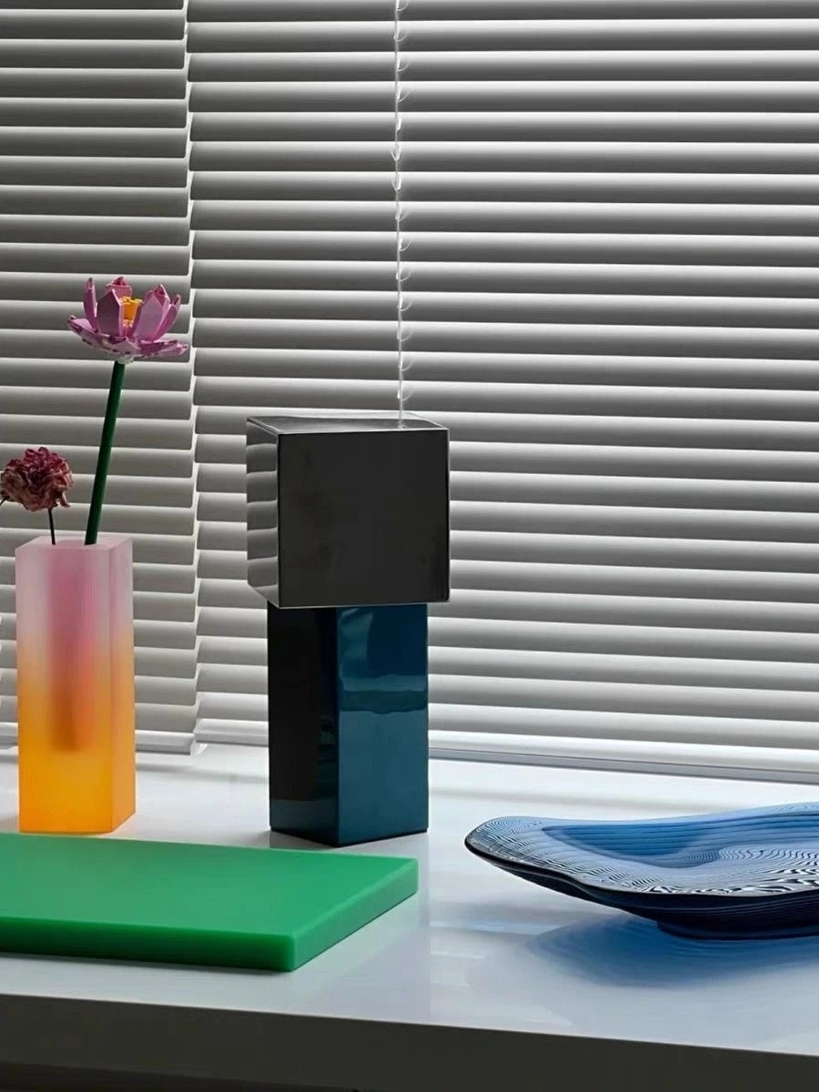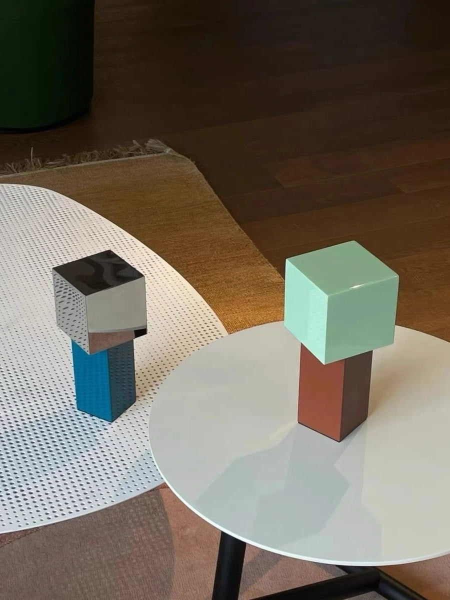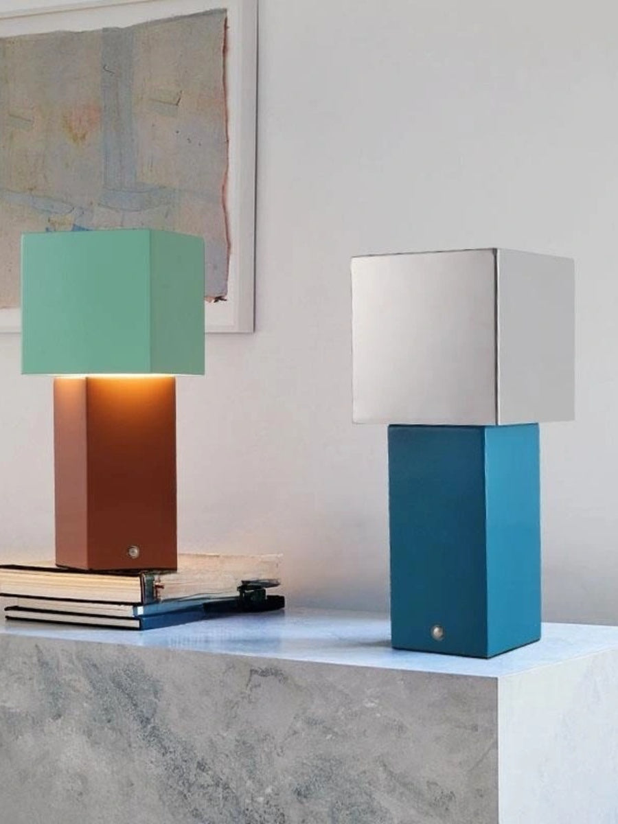 This rechargeable cube lamp transforms everyday spaces into modern sanctuaries. With its architectural silhouette and compact form, it brings a strong yet quiet presence to your interior, whether styled on a bedside table, reading nook, or café counter.