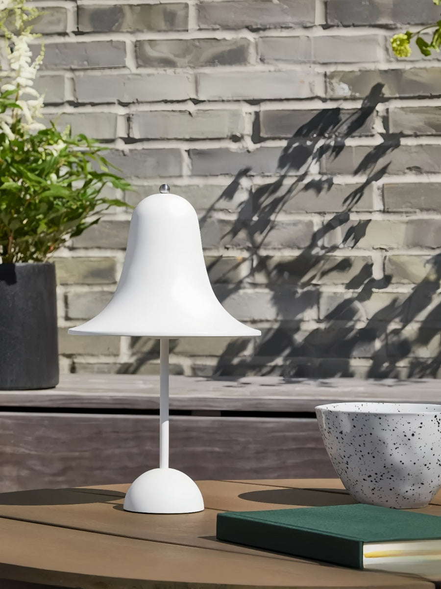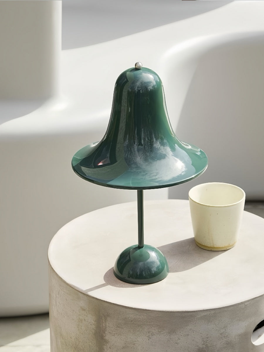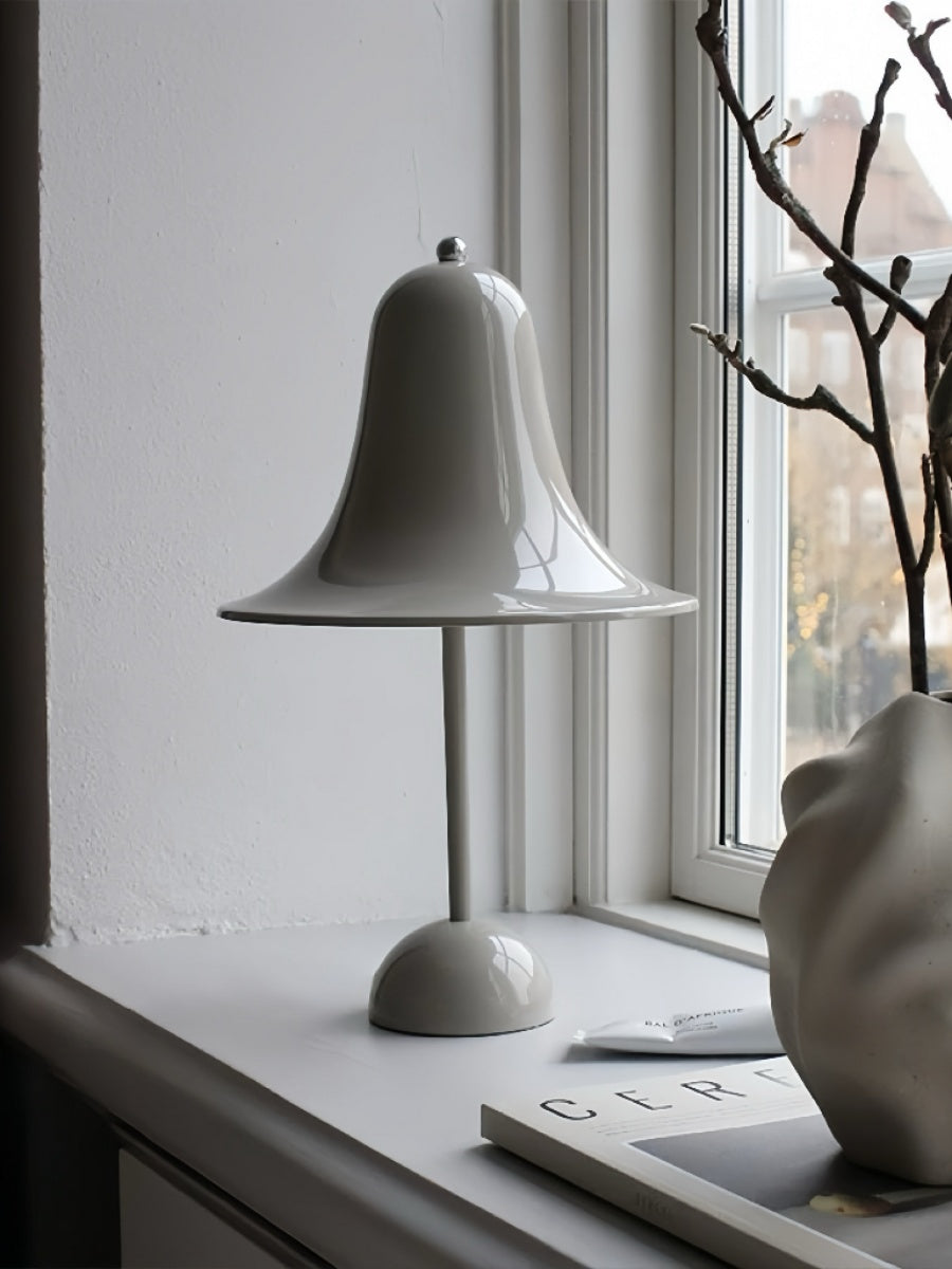 A sculptural Nordic lamp with a graceful bell silhouette, inspired by Danish Pantop classics. This portable mood light blends retro elegance and modern convenience perfect for transforming any corner into a serene, design-forward sanctuary. Pantop Inspired Design with USB type C Charging。