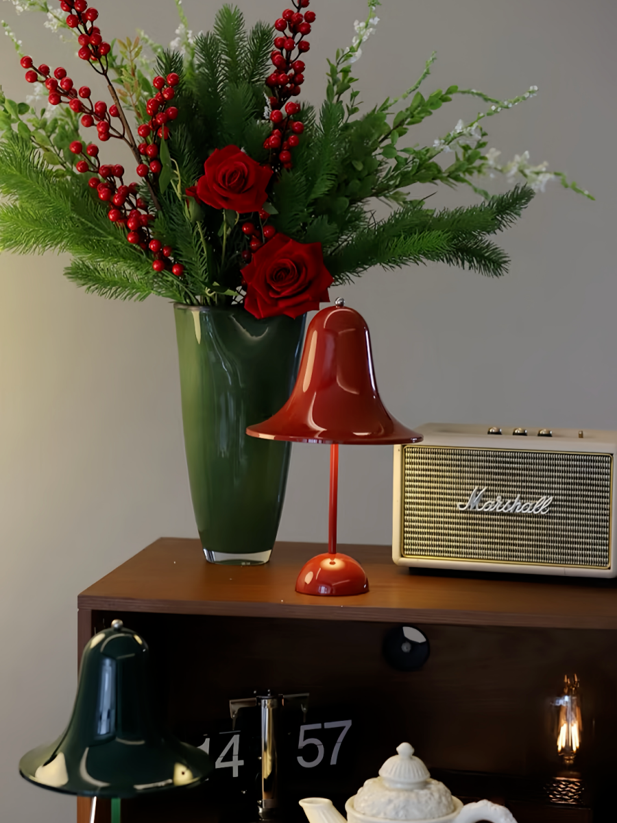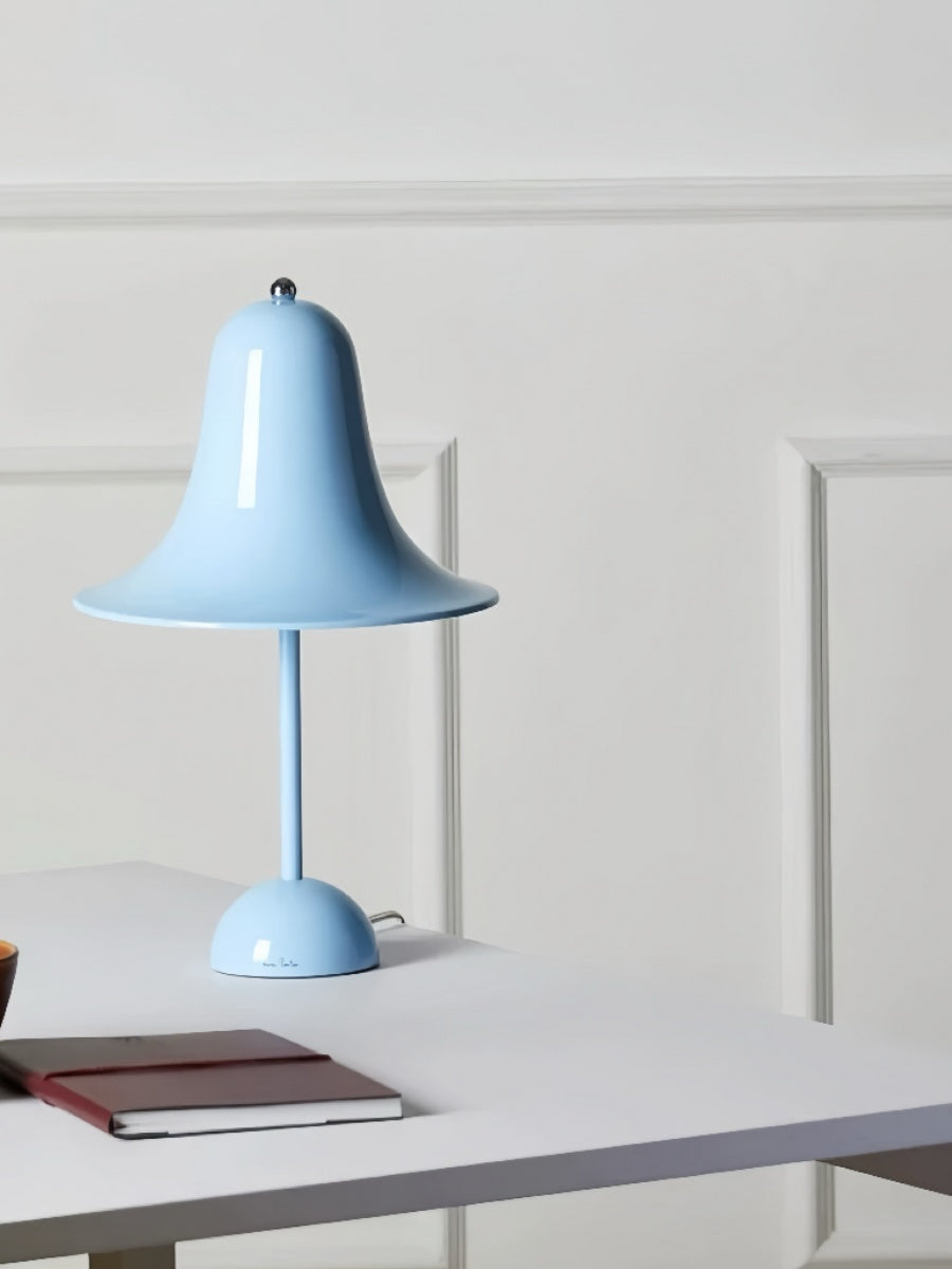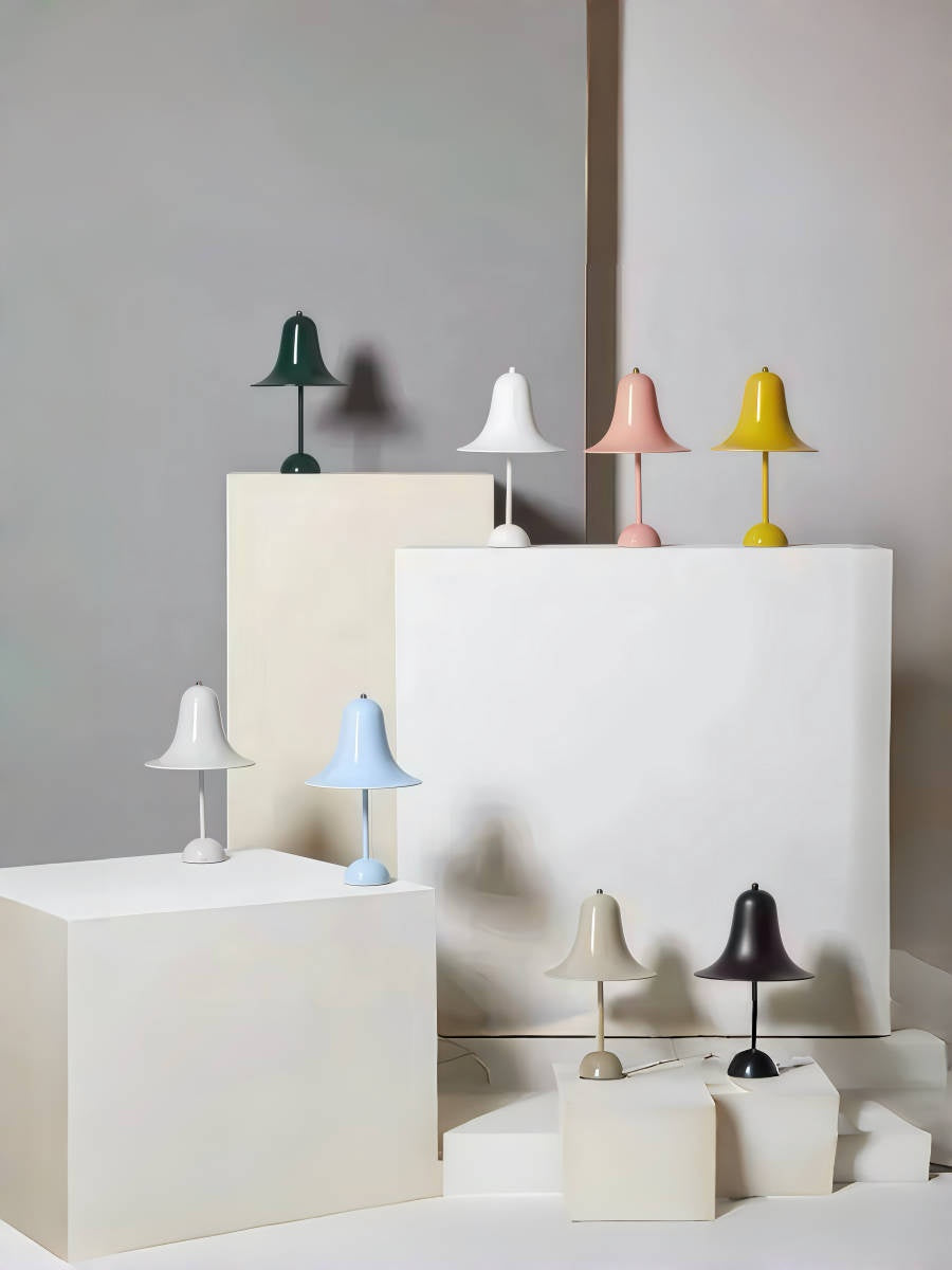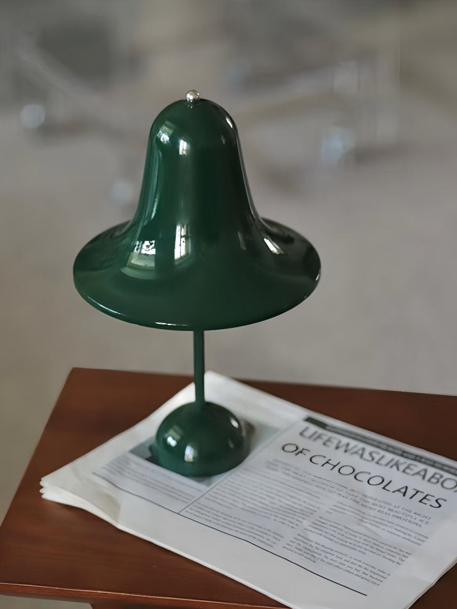 A sculptural Nordic lamp with a graceful bell silhouette, inspired by Danish Pantop classics. This portable mood light blends retro elegance and modern convenience perfect for transforming any corner into a serene, design-forward sanctuary. Pantop Inspired Design with USB type C Charging。