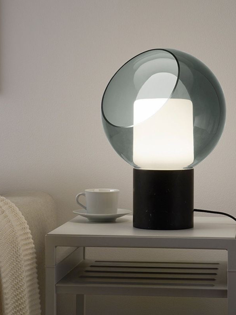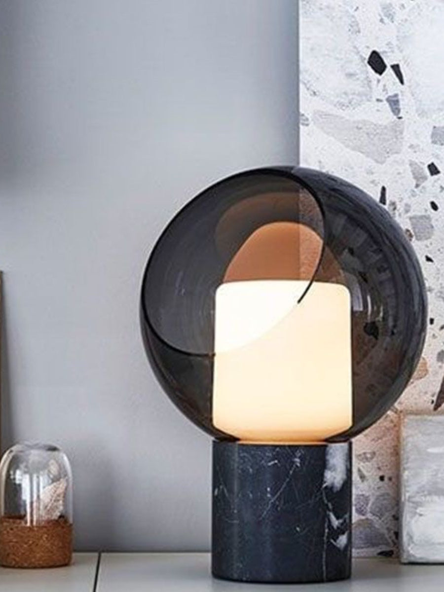 poetic blend of natural stone and soft illumination, this sculptural table lamp channels quiet luxury through its smoky glass globe and solid marble base. Designed for those who seek calm, mood, and material honesty in their space.